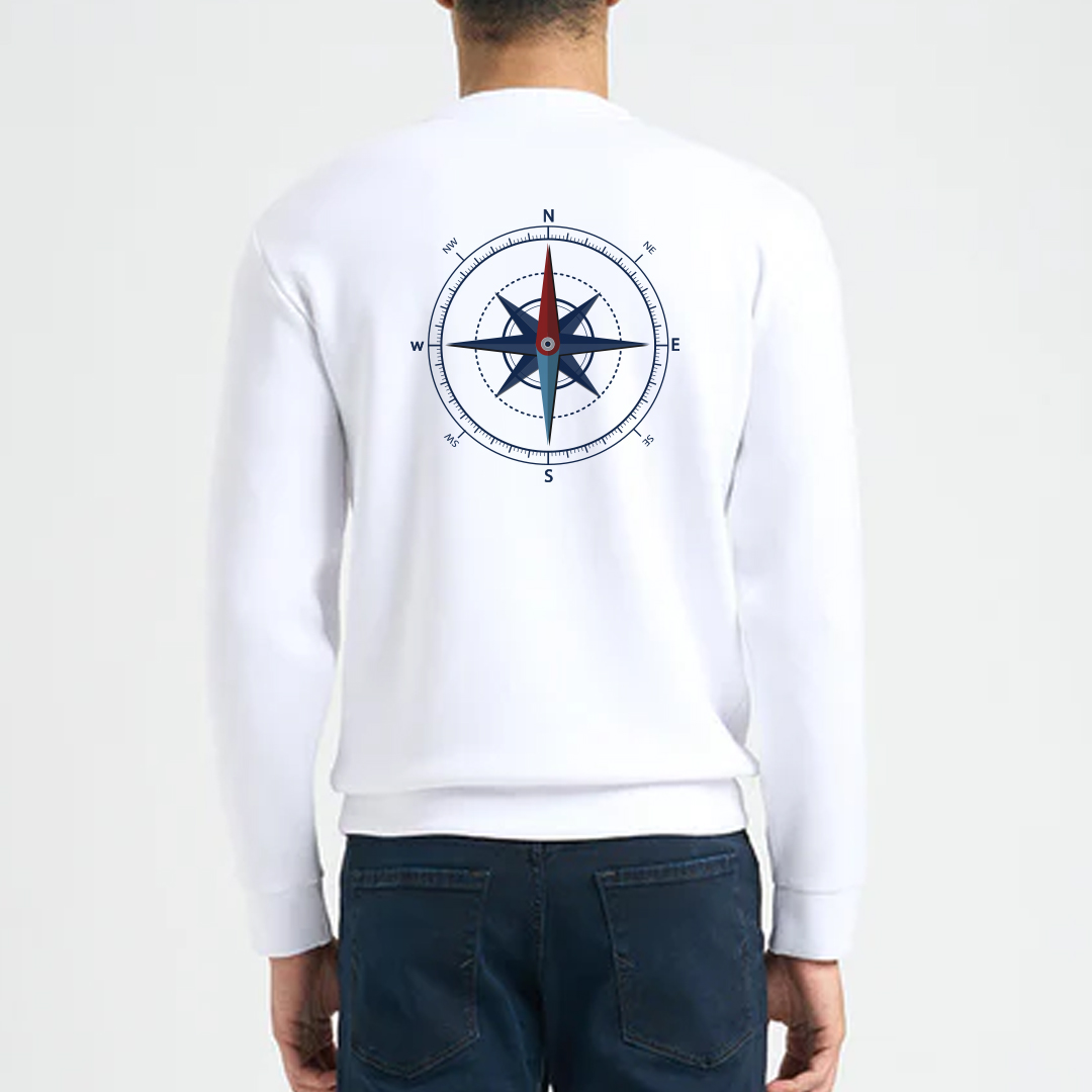 Compass Sweatshirt, White Crew Neck Sweatshirt, Custom Sweatshirt India, Unisex Cotton Sweatshirt, Printed Sweatshirt for Men, Premium Sweatshirt for Women, Trendy Sweatshirts India, Winter Fashion 2025