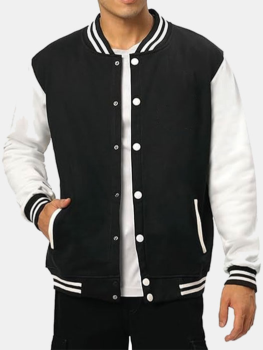 Crafted from 320 GSM Cotton Brushed Loopknit fabric, this jacket combines a classic white sleeve and black body