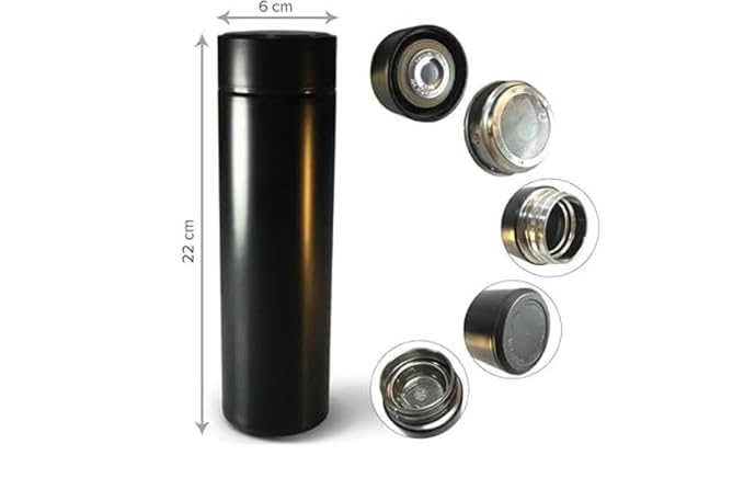incl all taxesStainless Steel Water Bottle With Led Temperature Display, Double Wall Vacuum Insulated Water Bottle (Pure Black), 500 ML